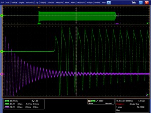 捕獲 - 100M 點(diǎn)采集和 HiRes 采集 - 增加后的垂直分辨率 >11 位,放大一倍以顯示波形細(xì)節(jié)。