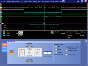 為提高數(shù)據(jù)捕獲效率,分隔存儲(chǔ)可以擴(kuò)展捕獲的總時(shí)間。 FastFrame™ 分段存儲(chǔ)器模式可讓您通過每秒高達(dá) 310,000 個(gè)觸發(fā)的捕獲速度,選擇高達(dá) 290,000 個(gè)存儲(chǔ)段。 除存儲(chǔ)靈活性外,各個(gè)段均已打上時(shí)間標(biāo)記,可以單獨(dú)查看多個(gè)段,或使用協(xié)議解碼等高級(jí)功能以重疊方式查看和分析多個(gè)段。