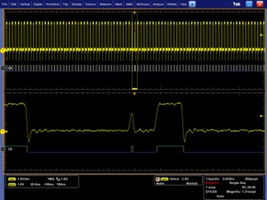 如果想調(diào)試設(shè)計(jì)問題,首先必須知道存在問題。 每個(gè)設(shè)計(jì)工程師都要用大量的時(shí)間查找電路中的問題,如果沒有合適的調(diào)試工具,這項(xiàng)任務(wù)耗時(shí)長、非常麻煩。 MSO/DPO5000B 系列提供業(yè)內(nèi)最完整的捕獲和隔離事件功能,可以快速地深入地分析設(shè)備真實(shí)的工作狀況。 泰克專有的 FastAcq™ 技術(shù)提供了快速波形捕獲功能,每秒可以捕獲超過 250,000 個(gè)波形,您可以在幾秒鐘內(nèi)看到毛刺和其它偶發(fā)瞬態(tài)信號(hào),揭示被測(cè)設(shè)備出現(xiàn)問題的真正原因。 帶有顏色輝度等級(jí)的數(shù)字熒光顯示器通過在信號(hào)區(qū)域的不同輝度,來顯示信號(hào)活動(dòng)的歷史信息,從而以可視方式顯示異常事件的發(fā)生頻次。