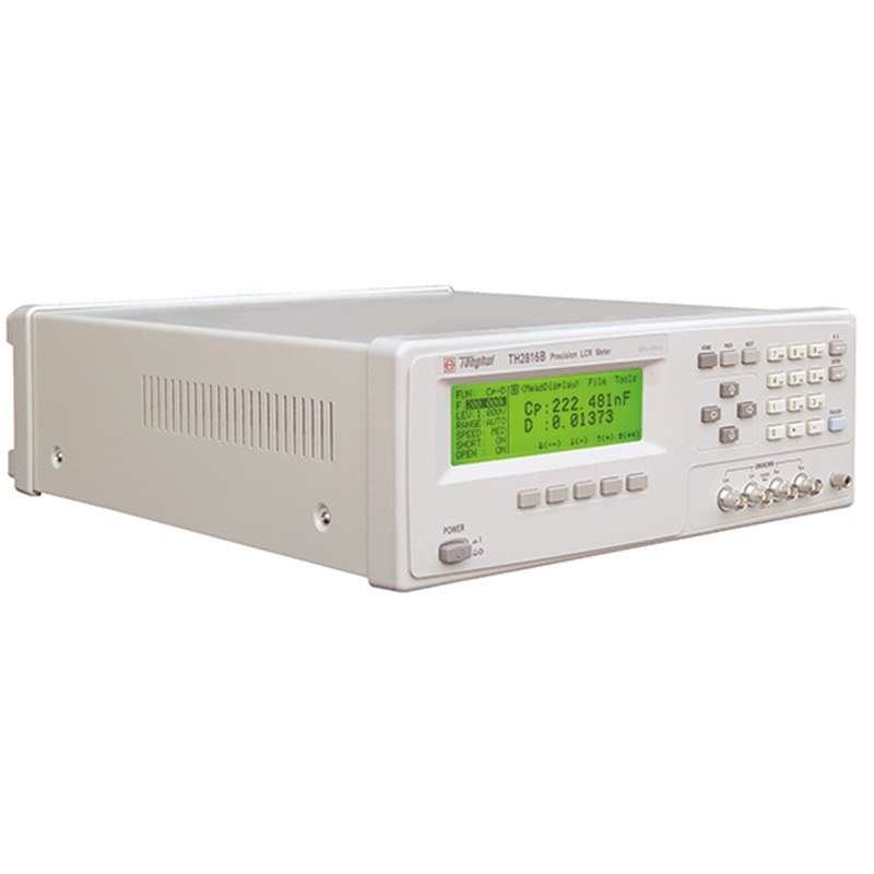 產品概述 TH2816B型精密LCR數字電橋是常州市同惠電子有限公司最新推出的新一代元件參數測試儀器, 價格低廉、性能優越。該產品集成了本公司多年元件測試的成熟經驗,運用了本領域的最新測試技術。儀器提供的6位測試分辨率, 50Hz~200kHz之間的三十七個典型測試頻率,并可選擇0.01V~2.00V之間以0.01V步進的測試信號電平,可以測量電容C、電感L、電阻R、 阻抗Z、電抗X等多種參數。本儀器功能強大、性能優越,并且采用液晶屏顯示,顯示明了,操作菜單化,快捷方便,能很好的適應生產 現場快速檢驗的需要以及實驗室高精確度高穩定度的測量需要,同時儀器所提供的HANDLER接口、GPIB(選件)接口及RS232C接口為儀器 使用于自動分選系統和計算機遠程操作提供了條件。