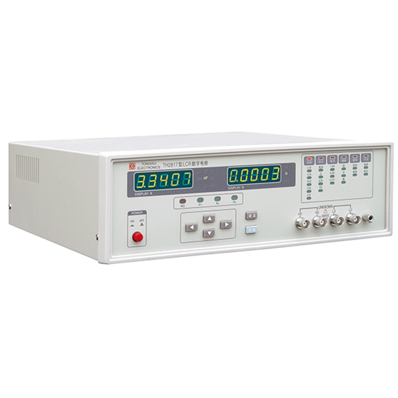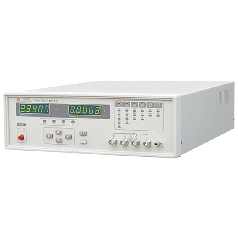 TH2817型LCR數(shù)字電橋是一種高精度、寬測試范圍的阻抗測量儀器, 可方便選擇100 Hz、120 Hz、1 kHz、10 kHz、40 kHz、100 kHz六個典型測試頻率,并可選擇0.1 Vrms、0.3 Vrms、1.0 Vrms三個測試信號電平。可測量電感L、電容C、電阻R等多種參數(shù)。 本儀器將強大的功能、優(yōu)越的性能及簡單的操作結(jié)合在一起, 既能適應(yīng)生產(chǎn)現(xiàn)場高速檢驗的需要, 又能滿足實驗室高精確度高穩(wěn)定度的測量需要, 同時儀器所提供的HANDLER及RS-232C接口為儀器使用于元件自動分選系統(tǒng)和與計算機聯(lián)網(wǎng)通訊提供了條件, 打印接口可直接將儀器測量條件輸出至打印機, TH2817為廣大用戶提供了一種高性能低價格的元件檢測儀器。
