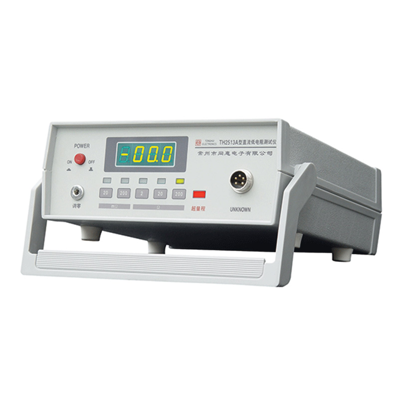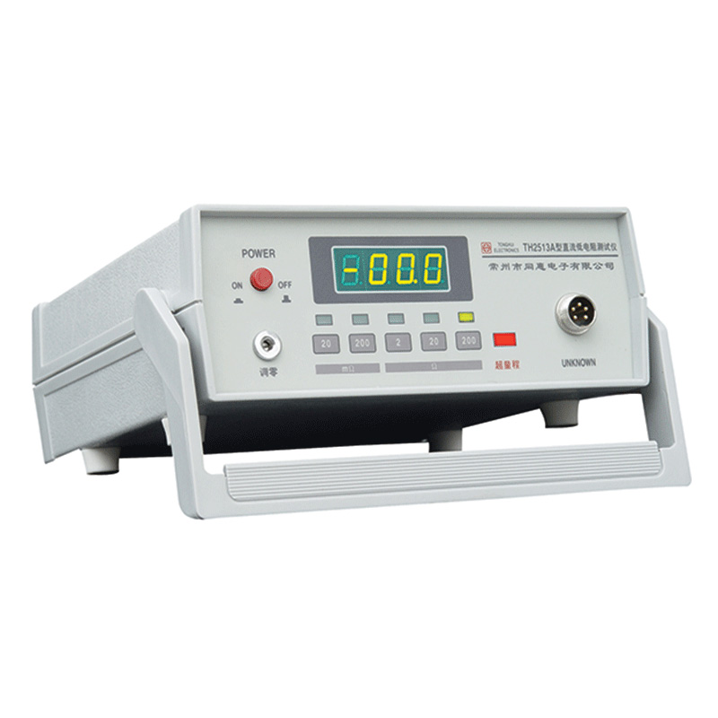 TH2513A型為3 1/2 位數(shù)字顯示的直流低電阻測試儀。量程范圍為 20 mΩ — 200 Ω,100 μA — 1 A 測試電流。適用于小型變壓器及電感線圈銅阻,繼電器接觸電阻,開關(guān),接插件接觸電阻,導線電阻,元件焊點接觸電阻,印制板線條及焊孔電阻,金屬探傷等。