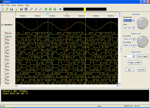 LA5034 USB 虛擬邏輯分析儀是專門用于觀測數字信號的測試測量儀器,它具有多線示波器和其它自動測試儀器的優點。 采用先進的大規模集成電路,整合了USB 2.0 、CPLD 、FPGA、高頻數字電路、嵌入式系統等先進技術,采用USB2.0供電即插即用,相對于傳統的臺式邏輯分析儀具有更高性能價格比,攜帶方便,簡單易用,擴展性好等優點,是替代傳統設備的最佳選擇。