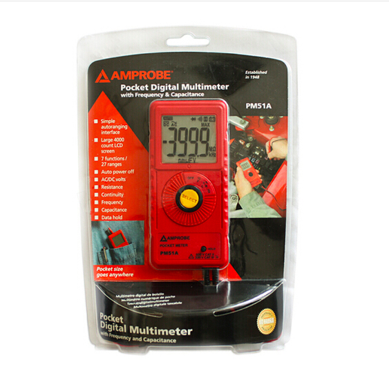 袖珍萬用表,可進行直流和交流電壓、電阻、頻率、電容測量、連續性測試,自動量程,7種不同測量功能,27種量程。
